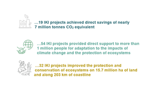 These practical examples from the four funding areas of the IKI, illustrate the concrete work of the IKI projects in the partner countries. All six projects illustrate how IKI's work is advancing ambitions for the mitigation of climate change and the conservation of biodiversity.