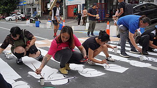 After several rounds of community conversations and envisioning workshops, an experimental reduction of vehicular traffic was implemented, leading to the creation of a protected bike lane and a widened pedestrian zone. More than 140 volunteers participated in this action, bringing community ownership to the space. The transformed stretch of the street witnessed many community events, such as bike training, yoga, dance-fitness, and mapping love stories of Maginhawa on Valentine’s Day.