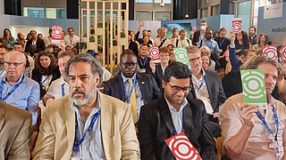 Moderator Hajar Yagkoubi used the opportunity to involve the audience by means of voting cards.