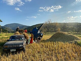 Jaruwan Khammuang: I come from Bann Samkha in Lampang province, Thailand; a small village with a community composed primarily of rice farmers. Despite the economic gains as rice farmers, we face two key challenges. One is the lack of income for many families after the harvest season, resulting in domestic migration of many to bigger cities in search of new opportunities. Second is air pollution and rise of CO2 emissions from the open burning of the rice straw.