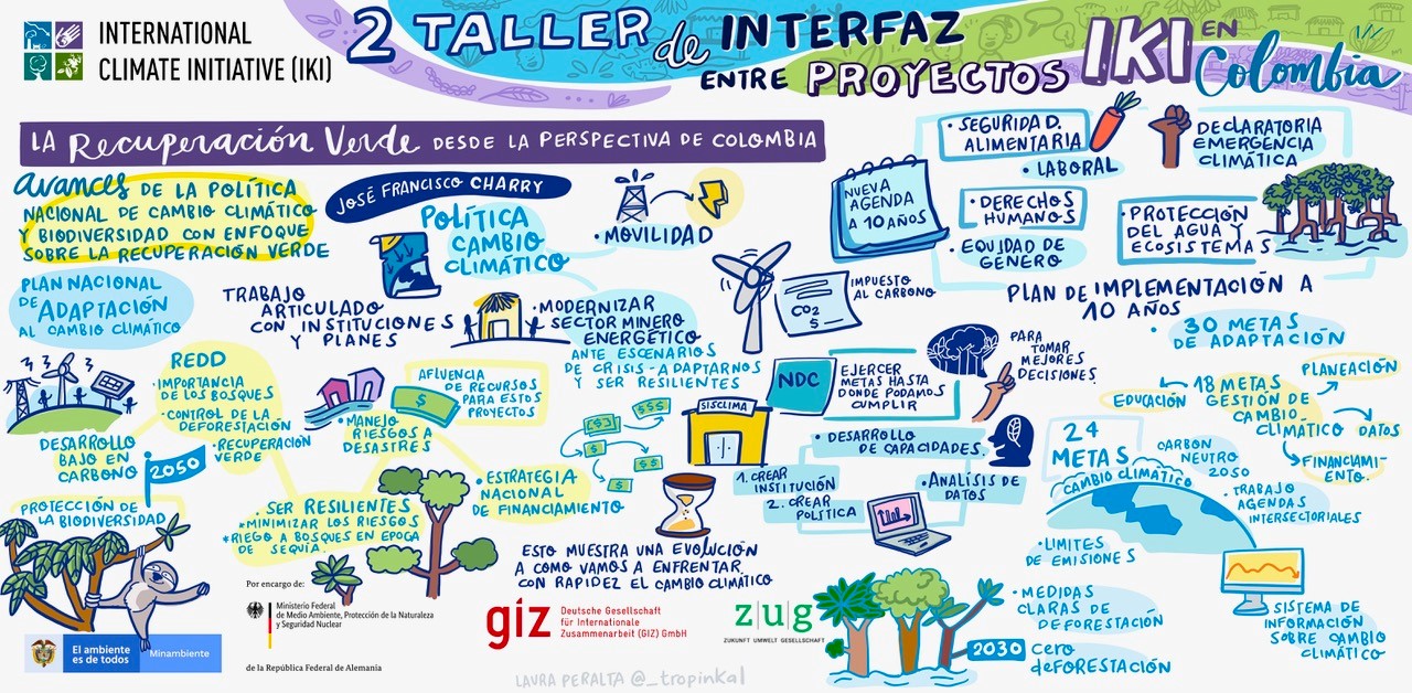 On 16 and 17 February 2021, the NDC Policy Programme hosted the second IKI Interface Workshop in Colombia. This annual event is designed to promote dialogue between the country’s IKI pro-jects, the Colombian Ministry of Environment (MinAmbiente) and the BMU about project activities and current topics in the fields of climate action and biodiversity. As a result of ongoing restrictions because of the COVID-19 pandemic, this year’s workshop was relocated from Bogotá to cyber-space. Around 60 participants used the online workshop to discuss insights and challenges in rela-tion to the implementation of their project activities – especially in the context of the pandemic.