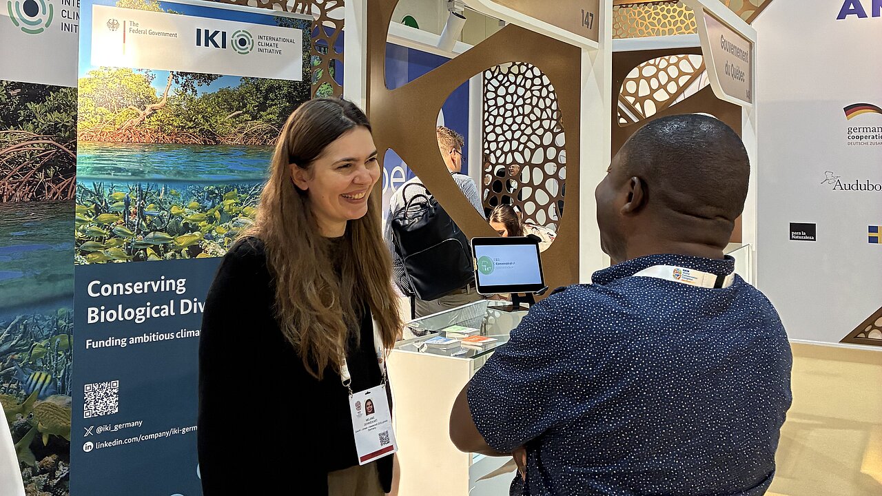 The IKI office had its own stand in the exhibition area. There the team provided information about IKI's work, exchanged ideas with interested parties and networked with partners from all over the world. We were particularly pleased to welcome many people from ongoing IKI projects.