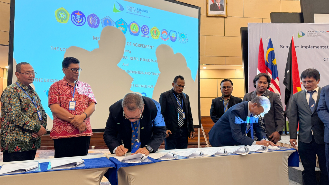 According to Tutus Wijanarko, SOMACORE Project Lead for Konservasi Indonesia, the MoA is accompanied by an agreement to develop a joint work plan for 2026–2030 aligned with the CTI-CFF Regional Plan of Action 2.0 for 2021–2030. He emphasized that the Science Hub will strengthen regional scientific databases, promote multidisciplinary research, and support climate-adaptive, transboundary marine conservation policies. Konservasi Indonesia, through the SOMACORE Programme, will support the Science Hub this year with a series of capacity building-training and research grants.