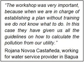 In 2016 and early 2017, staff from 42 utilities across Peru has received technical assistance for the formulation of their PMACCs, using site specific information like type of system, institutional capacities or geographical regions. In a number of workshops co-organised by WACCLIM representatives from utilities learned how to apply the "Energy Performance and Carbon Emissions Assessment and Monitoring (ECAM)" tool, developed by WaCCliM. ECAM is a free, web-based tool that allows utilities in Peru to assess their GHG emissions considering all components of the urban water cycle. These data feed the "Virtual PMACC Guide" tool, allowing water and wastewater companies to visualise how important improvements can be achieved in a short and long term, to model the reduction potential of future measures, and to prepare for future mandatory GHG reporting.