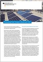 Promoting Solar Energy in Brazil and Chile 09/2017 | IKI Factsheet Brazil and Chile have huge renewable energy resources. In recent years, the costs of relevant technologies have experienced a signicant decline. The factsheet presents projects in Brazil and Chile facilitating the deployment of solar power. A publication as part of MEXIREC 2017. Download of publications Englisch | English (PDF, 993 KB) Share link https://www.international-climate-initiative.com/PUBLICATION218-1 The link has been copied to the clipboard