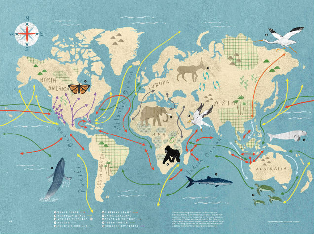 Doch der Weg zu ihren Zielen ist für die Tiere gefährlich. So werden einige ziehende Wasservögel, aber auch Delphine und Wale gejagt. Ein weiteres Problem ist der Rückgang von intakten Ökosysteme entlang der Wanderrouten. Die Tiere benötigen sie nicht nur in ihren Winter- und Sommerquartieren, sondern auch für den Weg.
