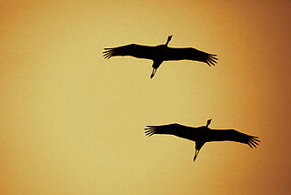 Noch ist es Winter, doch am Himmel sind sie bereits zu sehen und auch deutlich zu hören: die Kraniche. Aus dem warmen Südeuropa kommend, sind sie auf dem Weg nach Skandinavien. Dabei fliegen sie mehrere tausend Kilometer.
