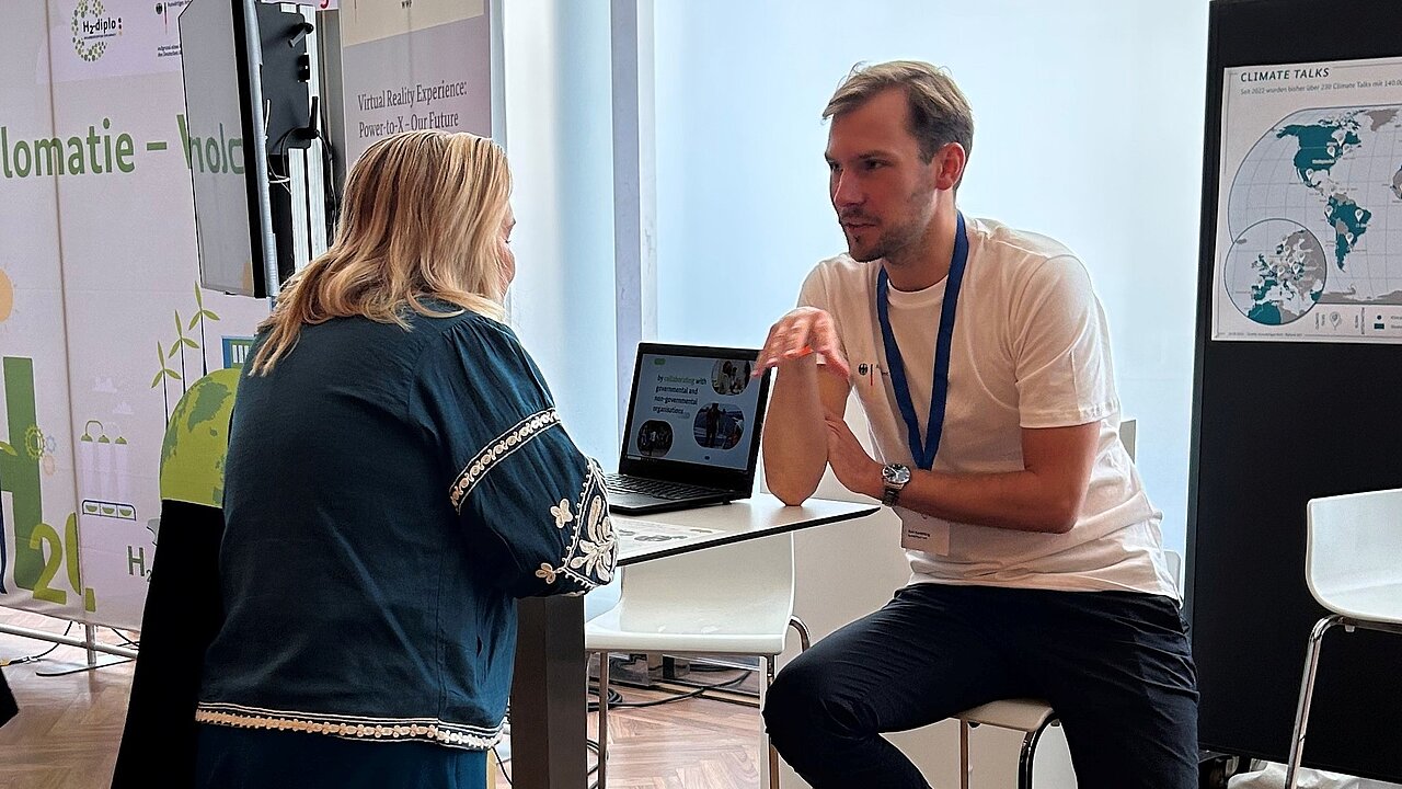 Beim Tag der offenen Tür der Bundesregierung war auch die Internationale Klimaschutzinitiative (IKI) vertreten und nutzte die Gelegenheit, um mit Bürgerinnen und Bürgern ins Gespräch zu kommen.