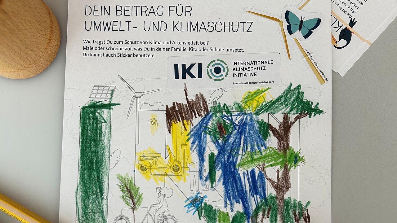 Unser Ziel war es, die IKI als internationales Förderprogramm auch im Inland bekannter zu machen und Einblicke in unsere Arbeit zu geben. Ein besonderes Highlight war unsere Mitmachstation für Kinder: In einer Mal- und Bastelwerkstatt gestalteten sie Ausmalbögen zum Thema „Mein Beitrag zum Klimaschutz“. So kamen Themen wie erneuerbare Energien, umweltfreundlicher Transport oder Wiederaufforstung kindgerecht auf den Tisch. Mit Farbstiften und Stickern setzten sich die Jüngsten kreativ mit dem Klima- und Artenschutz auseinander. Interesse weckte zudem unser Quiz, das wir gemeinsam mit dem Auswärtigen Amt vorbereitet hatten.