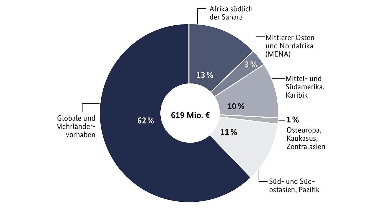 Bis Ende Dezember sind 109 Projekte in ODA-Ländern im Jahr 2020 neu gestartet oder wurden noch einmal finanziell aufgestockt. Hierfür wurden im Jahr 2020 rund 619 Millionen Euro für getätigte Ausgaben in 2020 und geplante Ausgaben in Folgejahren zugesagt.