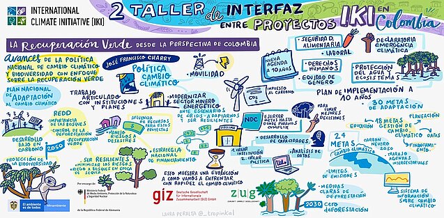 Neben aktuellen Entwicklungen zum strategischen und politischen Rahmen für Klimaschutz und Biodiversität lag der thematische Fokus des ersten Tages auf den Möglichkeiten eines nachhaltigen Wiederaufbaus („Green Recovery“). Die kolumbianische Regierung stellte im Herbst 2020 eine neue Strategie vor, um den wirtschaftlichen Aufschwung nach der COVID-19-Pandemie fair und nachhaltig zu gestalten. Die Strategie unterstreicht die Rolle von erneuerbaren Energien, den Er-halt und Schutz von natürlichen Ressourcen sowie die Schaffung von „Green Jobs“ zur Erreichung dieser Ziele.