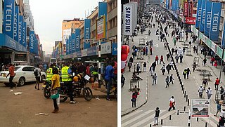Die positiven Auswirkungen dieser Initiativen zeigen sich unter anderem in der Verbesserung der Begehbarkeit, der Verringerung von Emissionen und Umweltverschmutzung, der Erhöhung der Verkehrssicherheit und der Steigerung der Geschäftsmöglichkeiten. So führte beispielsweise die Fußgängerzone „Luthuli Avenue“ in Nairobi zu einem Anstieg der Fußgänger um 29 Prozent, wobei insbesondere mehr Frauen und ältere Menschen in der Fußgängerzone anzutreffen waren – zwei gesellschaftliche Gruppen, die den Raum nun aufgrund der verbesserten Zugänglichkeit, Sicherheit und Bequemlichkeit angenehm nutzen können. In einer von den Partnerinnen und Partnern durchgeführten Umfrage gaben insgesamt 83,3 Prozent der Befragten in Nairobi an, dass sie die Maßnahme befürworten. Die Mehrheit der wirtschaftlichen Interessenvertreterinnen und Interessenvertreter äußerte sich ebenfalls sehr positiv über die geschäftlichen Verbesserungen (41 bis 80 Prozent).
