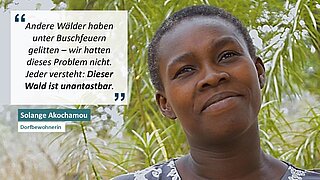 Die Innovation liegt in der Rückkehr zu einem gemeinsamen Gefühl von Eigentum und Respekt für den Wald, der von der lokalen Bevölkerung als heilig betrachtet wird – und der Schlüssel zur lokalen sozialen Kohäsion ist. Wie Solange Akochamou, eine Dorfbewohnerin, bemerkt: „Andere Wälder haben unter Buschfeuern gelitten. Wir haben dieses Problem nicht. Jeder versteht, dass dieser Wald unantastbar ist.“