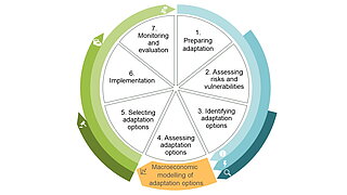 In einem weiteren Schritt können nun Anpassungsmaßnahmen eingebaut werden. Durch den Vergleich der Szenarien „Klimawandel ohne Anpassung“ und „Klimawandel mit Anpassung“ lassen sich die gesamtwirtschaftlichen Folgen einzelner Anpassungsmaßnahmen abschätzen.