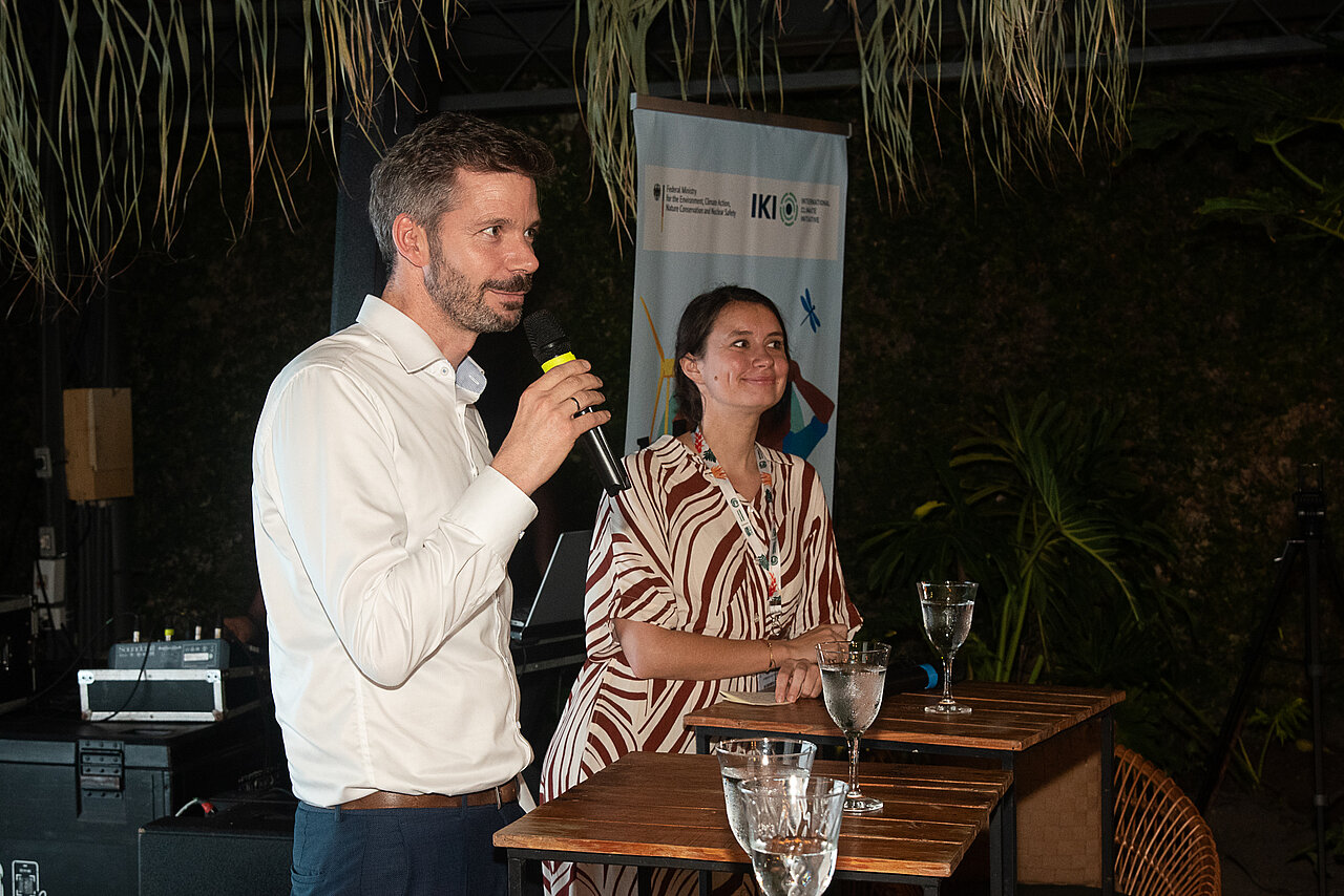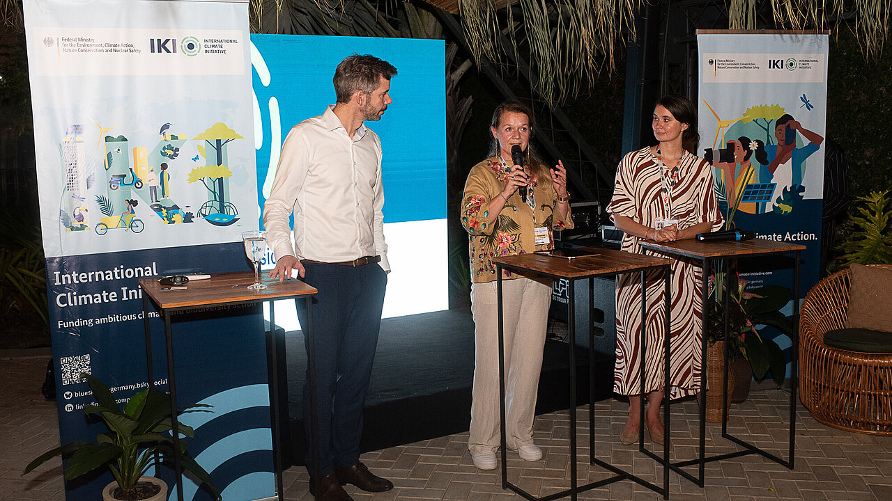 In entspannter Atmosphäre trafen sich über 100 Teilnehmende am Rande der COP, tauschten sich aus, lernten voneinander und knüpften neue Kooperationen. Der Kreis umfasste Vertreterinnen und Vertreter von IKI-Durchführungsorganisationen und ihren Partnerorganisationen sowie aus den deutschen Ministerien, die das Förderprogramm betreuen.