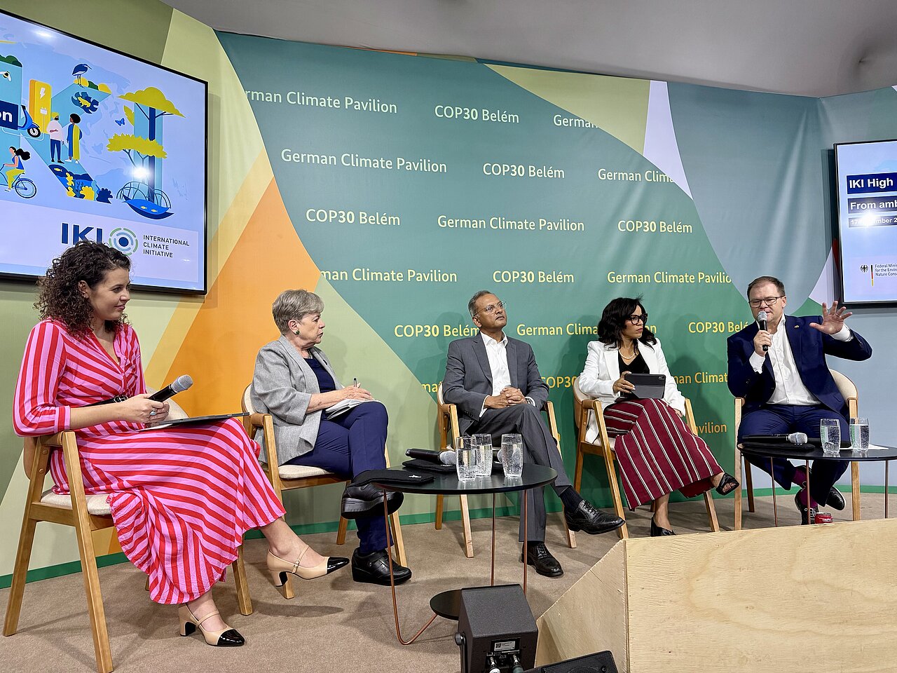 Im November 2025 war die IKI bei der Weltklimakonferenz in Belém, Brasilien, vor Ort. Vertreter*innen des Bundesumweltministeriums (BMUKN) und des Auswärtigen Amts (AA) trafen sich mit zentralen IKI-Stakeholdern. Darüber hinaus veranstaltete die IKI während der COP30 zwei bedeutende Events. Mit den Gewinnerfotos des IKI-Fotowettbewerbs prägte die IKI zudem den German Climate Pavilion, den zentralen Veranstaltungsort der Bundesregierung auf dem Veranstaltungsgelände.