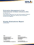 Clusterauswertung von IKI-Einzelprojektevaluationen aus dem zweiten IKI-Evaluierungszyklus: Das Executive Summary zur Clusterauswertung beschreibt in Kürze die zentralen Ergebnisse und Handlungsempfehlungen der zusammenfassenden Clusteranalyse von Einzelprojektevaluationen, die im Rahmen des zweiten IKI-Evaluierungszyklus durchgeführt wurden. In einer Management Response hat die IKI auf die Ergebnisse und Handlungsempfehlungen insgesamt reagiert.
