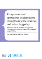Dieser Bericht präsentiert die Ergebnisse einer Literaturrecherche sowie von Interviews und Fokusgruppen-Diskussionen mit einer Vielzahl von Stakeholdern, die von der IUCN im Rahmen des Projekts "Ökosystembasierte Ansätze zur Klimaanpassung: Stärkung der Evidenz und der Informationsgrundlage für politische Entscheidungen" in Chile durchgeführt wurden, wo Gemeinden in einem Biosphärenreservat gezeigt wurde, wie gesunde Waldökosysteme eine entscheidende Rolle beim Schutz der Infrastruktur und der Gemeinden selbst vor Lawinen- und Erdrutschgefahren spielen können.