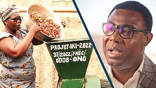 Appolinaire Gnanvi vom Nationalfonds für Umwelt und Klima (FNEC) in Benin erläutert die Ergebnisse der Zusammenarbeit mit dem IKI Small Grants-Programm für lokale Klima- und Biodiversitätsprojekte. Mit Unterstützung der Internationalen Klimaschutzinitiative (IKI) Deutschlands arbeitet der FNEC mit lokalen Organisationen zusammen, um Wälder und Weiden zu schützen, Gemeinschaften zu stärken und Lebensgrundlagen durch Fischzucht, Imkerei und andere nachhaltige Einkommensquellen zu schaffen.