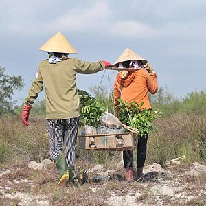 Die nördlich-zentrale Küstenregion Vietnams ist stark von den Folgen des Klimawandels betroffen. Ursprünglich schützten dichte Dünenwälder und Mangroven die Bevölkerung an der Küste vor extremen Wetterereignissen, wie den immer öfter auftretenden Taifune. Die Ökosysteme wurden jedoch durch Entwaldung zu stark zerstört, um diese Funktion zu leisten. Das Projekt stellt gemeinsam mit ausgewählten lokalen Gemeinden die Dünen- und Mangrovenwälder auf Pilotflächen wieder her. Es demonstriert damit die Machbarkeit von ökosystembasierten Anpassungsmaßnahmen (EbA), die nicht nur die Bevölkerung schützen, sondern auch die Lebensgrundlagen durch nachhaltige Geschäftsmodelle stärken, die die restaurierten Mangroven nutzen. Die durch das Projekt gewonnen Erkenntnisse und Ansätze sollen als Referenz dienen und politische sowie nichtstaatliche Akteure unterstützen, die bei der Umsetzung und Ausweitung von EbA-Maßnahmen mitwirken.