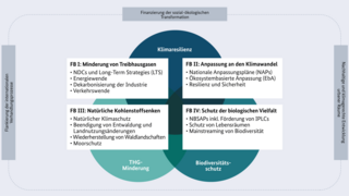 Die Elektrifizierung des öffentlichen Nahverkehrs in Indonesien, die Wiederherstellung von Mangrovenwäldern in Mexiko, der Austausch von Erdölkraftwerken gegen Erneuerbare Energie in Ägypten oder die sozialverträgliche Renaturierung ehemaliger Bergwerksregionen in Südafrika: Diese Beispiele geben einen kleinen Einblick in die enorme Bandbreite der Herausforderungen, die die Staatengemeinschaft bewältigen muss, um die globalen Klima- und Biodiversitätsziele bis 2050 zu erreichen.