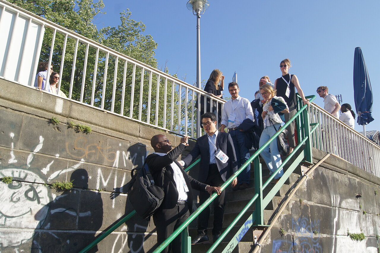 Die Internationale Klimaschutzinitiative (IKI) war vor allem in einer ganz besonderen Abendveranstaltung vertreten: Beim „Dinner Cruise with NDC Conversation“ hatten die Teilnehmenden die Gelegenheit, bei einer Bootsfahrt auf der Spree mit Vertreterinnen und Vertretern des IKI-Referats des BMWK ins Gespräch zu kommen. So konnten sie auszuloten, welche Unterstützungsmöglichkeiten zur NDC-Implementierung das Förderprogramm bietet: